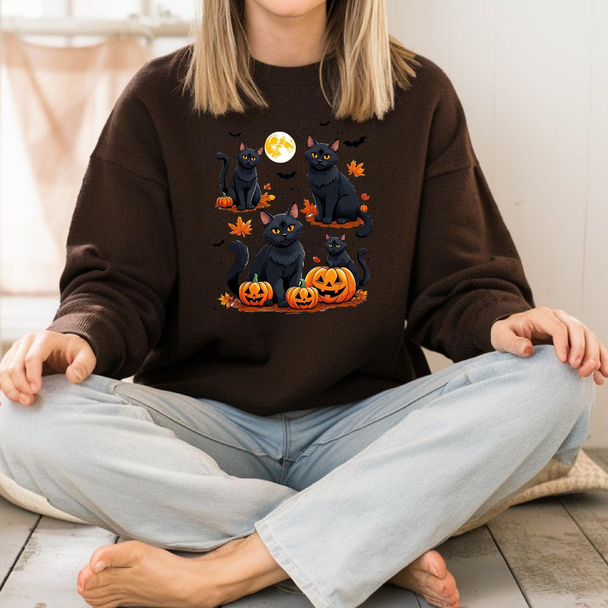 Black Cat Sweatshirt – Cozy Halloween Crewneck With Pumpkin Bat Graphics