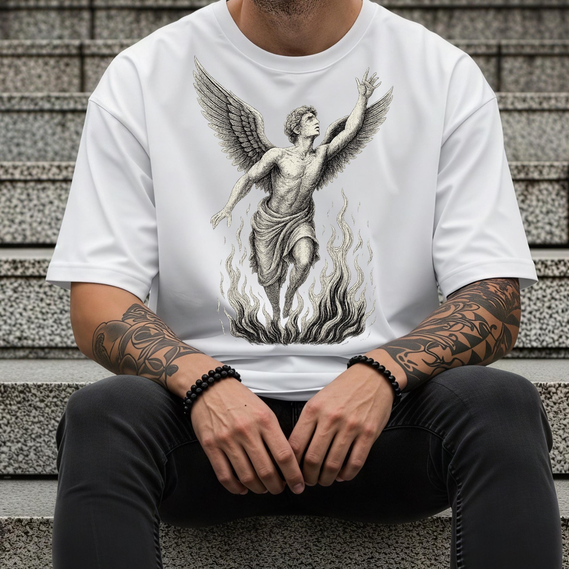 This celestial angel t-shirt is designed to last, with high-quality print technology that resists fading and cracking even after multiple washes. The artistic flame design brings a bold statement to your wardrobe while maintaining the softness and breathability expected from premium vintage angel tees. Whether you're dressing up for street style or layering for casual occasions, this black and white shirt offers versatile wearability.