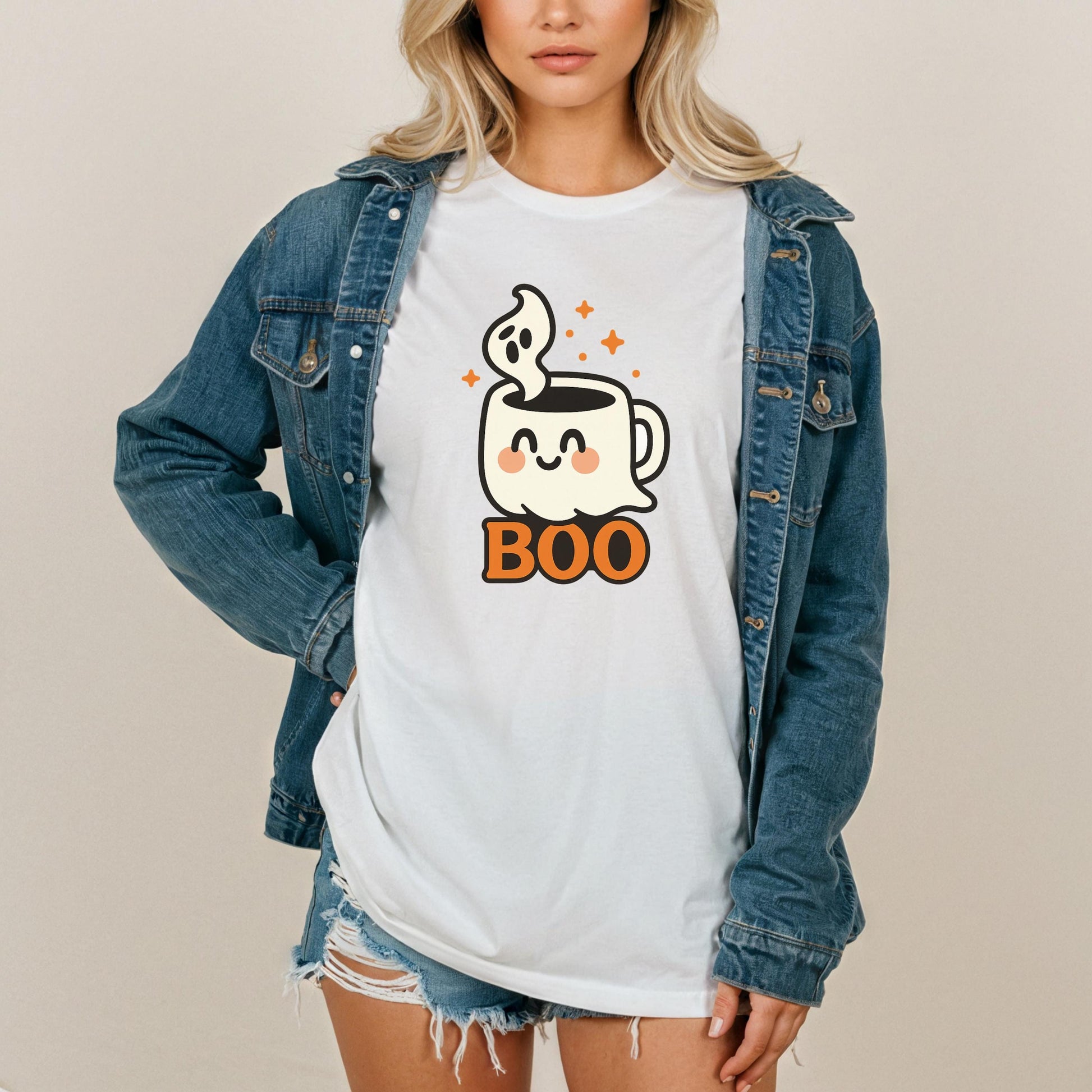 Halloween Coffee Tee – Cute Ghost Shirt With Boo Mug Design | Soft Cotton