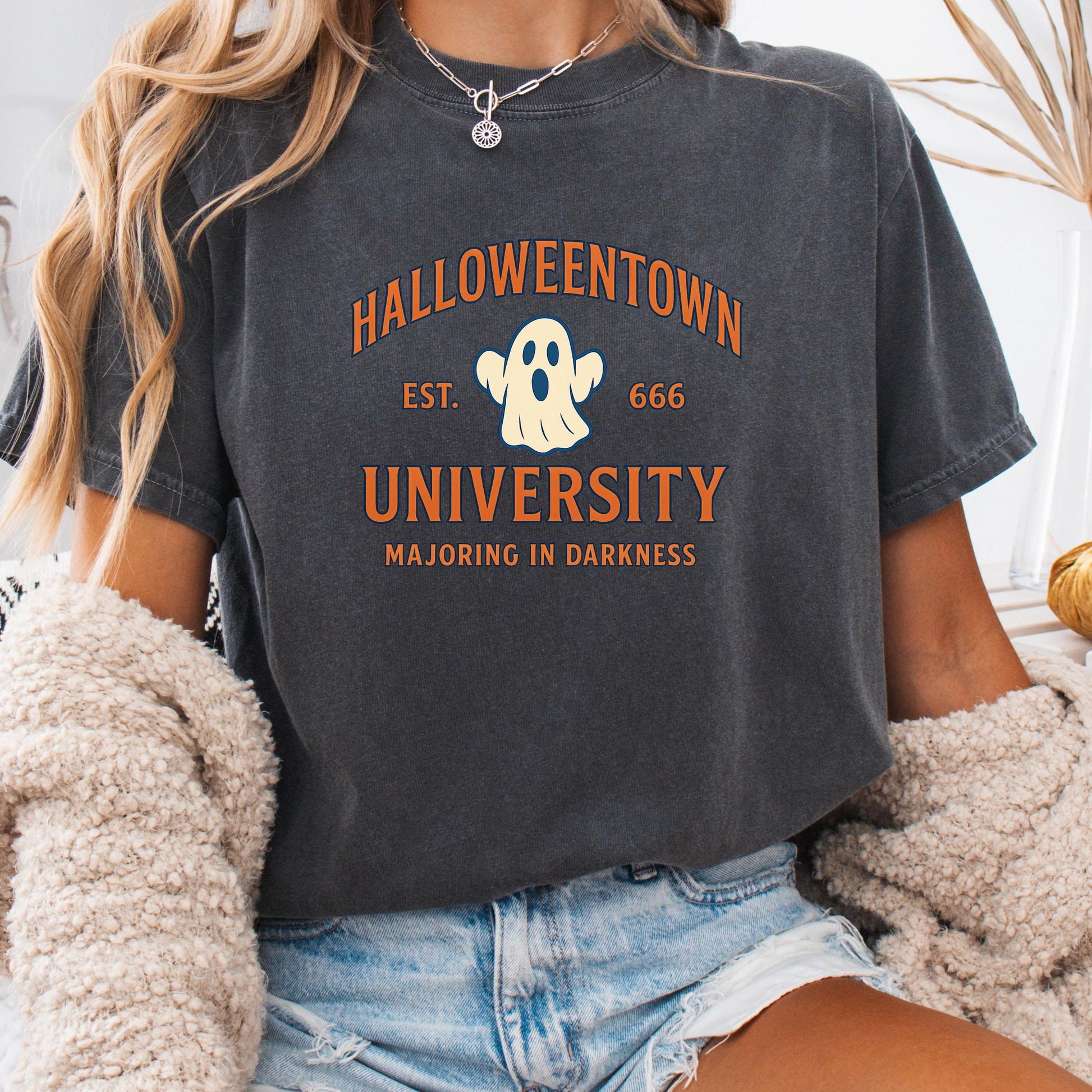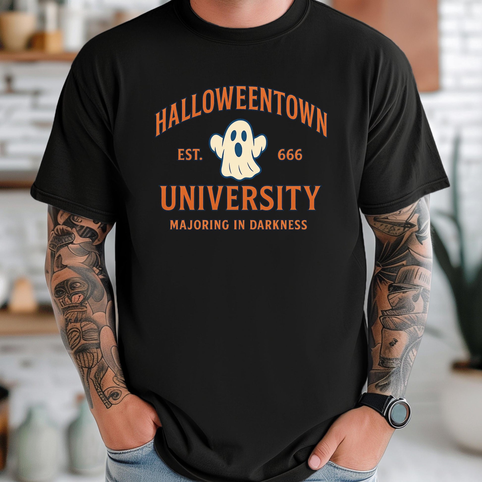 This Halloweentown Ghost T-Shirt combines fun design with comfortable wearability, making it a must-have spooky season shirt that celebrates the spirit of Halloween in style. Join countless happy customers who love this unique Halloween college tee for its quality and charm.