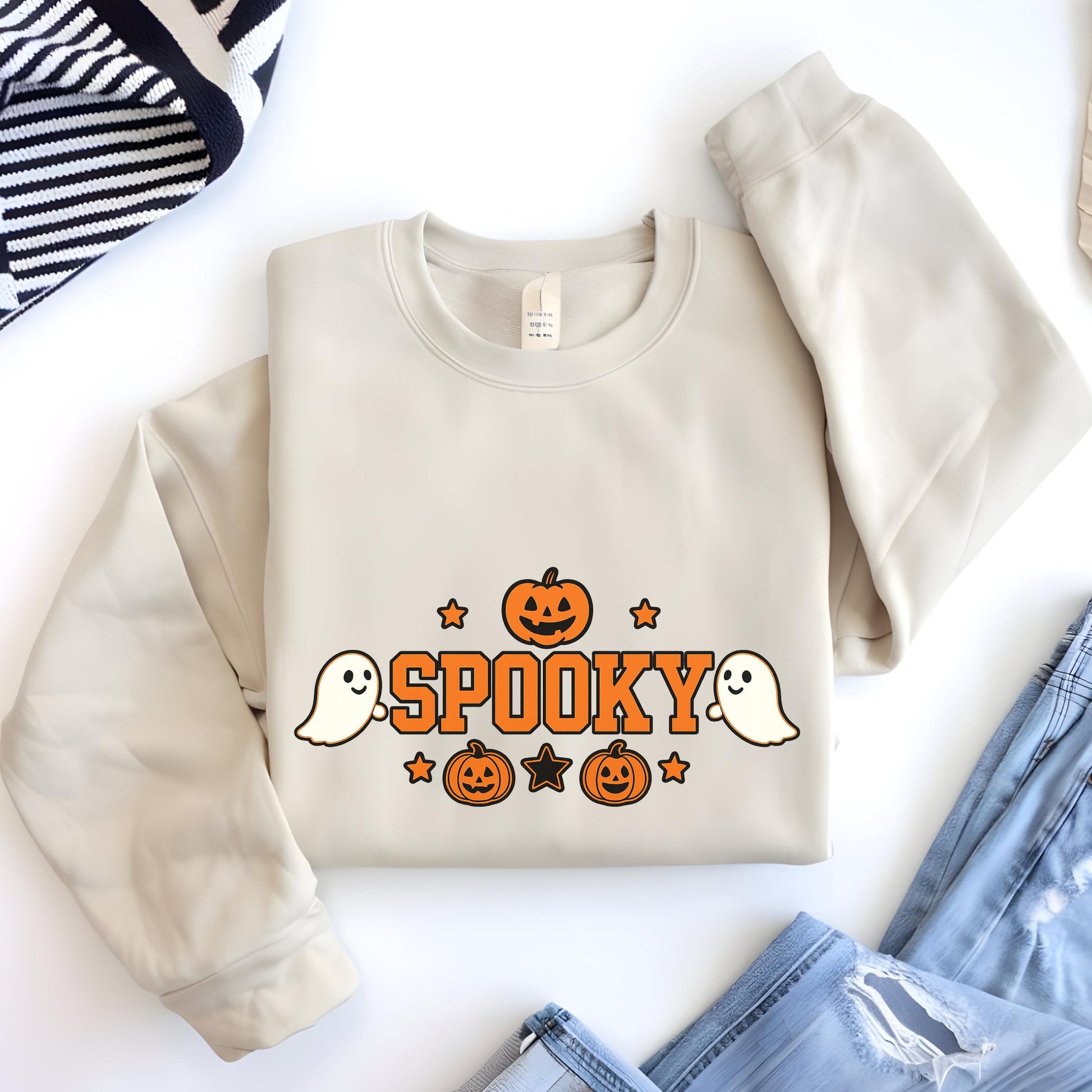Halloween Sweatshirt - Cozy Fall Pullover With Ghost Pumpkin Design & Spooky Style